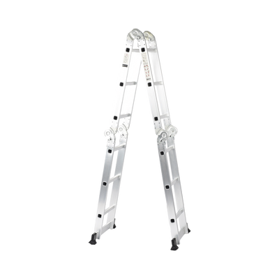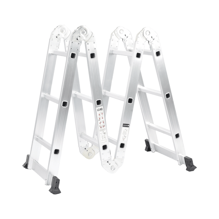 a escalera de aluminio multiposiciones PSTH10003 de 3.52 metros es una herramienta indispensable para quienes buscan funcionalidad y flexibilidad en sus proyectos. Su diseño ajustable permite configurarla en diferentes posiciones, como escalera recta, tipo tijera, andamio o posición en ángulo, es resistente, ligera y fácil de transportar.